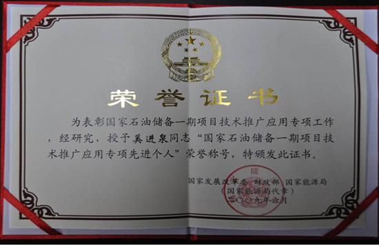 表彰会上对评选出的中国石化系统及相关合作单位的6名先进集体和35名先进个人颁发了获奖证书,公司获“国家石油储备一期项目技术推广应用专项先进集体”荣誉称号,获此殊荣的仅我们公司一家(国家石油储备一期项目建设先进集体共17家);公司董事、副总经理奚进泉获“国家石油储备一期项目技术推广应用专项先进个人”荣誉称号,获此殊荣的仅3人(国家石油储备一期项目建设先进个人共56名)。